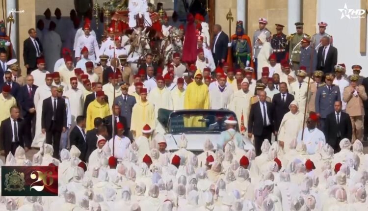 وشكل هذا الحفل البهيج، الذي يتوج الاحتفالات المخلدة للذكرى السادسة والعشرين لتربع صاحب الجلالة الملك محمد السادس، أيده الله، على عرش أسلافه الميامين، مناسبة لممثلي الجهات الاثنتي عشر للمملكة، لتجديد تشبثهم بشخص جلالة الملك وبأهداب العرش العلوي المجيد، وللتأكيد من جديد، على أن الصلة التي تجمع العرش بالشعب تظل متجذرة في عمق تاريخ البلاد وتشكل على الدوام الأساس المتين للأمة المغربية والتعبير الأسمى عن مدى تماسكها واستمراريتها.