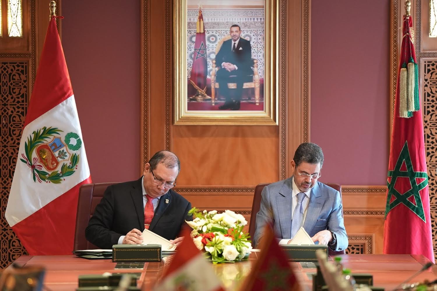 وجرى خلال هذا الاستقبال توقيع مذكرة تفاهم تحدد الإطار العام لترسيم التعاون والتنسيق بين المجلس الأعلى للسلطة القضائية بالمملكة المغربية والسلطة القضائية بجمهورية البيرو.