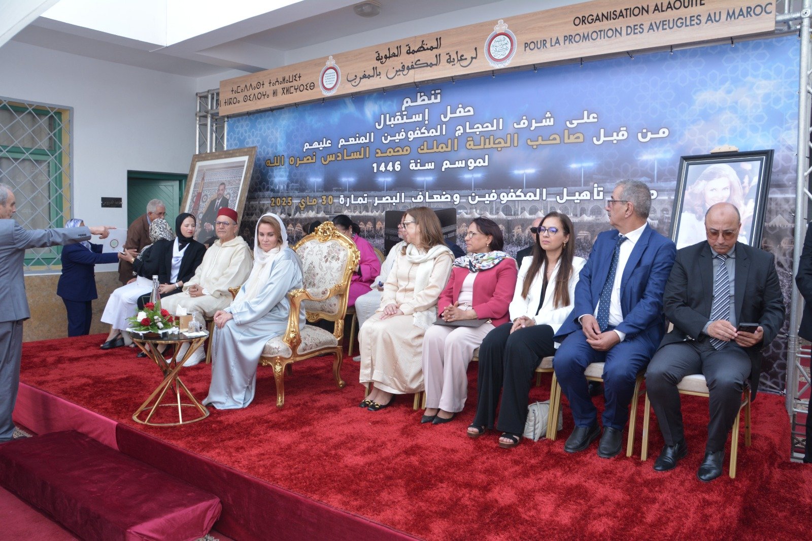نُظم مساء الجمعة 30 ماي 2025 بمدينة تمارة حفل رسمي لاستقبال وفد الحجاج المكفوفين الذين أنعم عليهم أمير المؤمنين الملك محمد السادس، بأداء مناسك الحج لموسم 1446 هـ، وذلك بمبادرة من المنظمة العلوية لرعاية المكفوفين بالمغرب، تحت الرئاسة الفعلية للأميرة للا زينب.