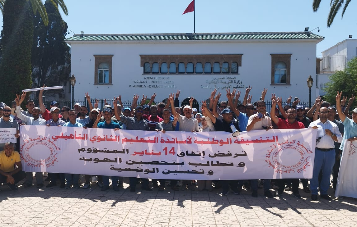 وأشادت التنسيقية الوطنية لأساتذة التعليم الثانوي التأهيلي بكل المبادرات والوساطات المسؤولة، التي تقوم بها الهيئات الحقوقية والمدنية والسياسية والنقابية، سواء بهدف الإلغاء والسحب الفوري للتوقيفات التعسفية التي طالت مجموعة من نساء ورجال التعليم، أو بهدف استرجاع الاقتطاعات الجائرة من أجور الشغيلة التعليمية.