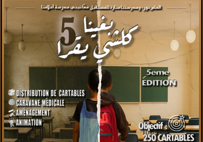 وتهدف هذه المبادرة التضامنية إلى توزيع المستلزمات المدرسية على 250 تلميذا ينتمون إلى أسر معوزة، وذلك من أجل تشجيع التمدرس ومساندة الأطفال في مسارهم الدراسي، بما يضمن تكافؤ الفرص ويعزز قيم العدالة الاجتماعية.