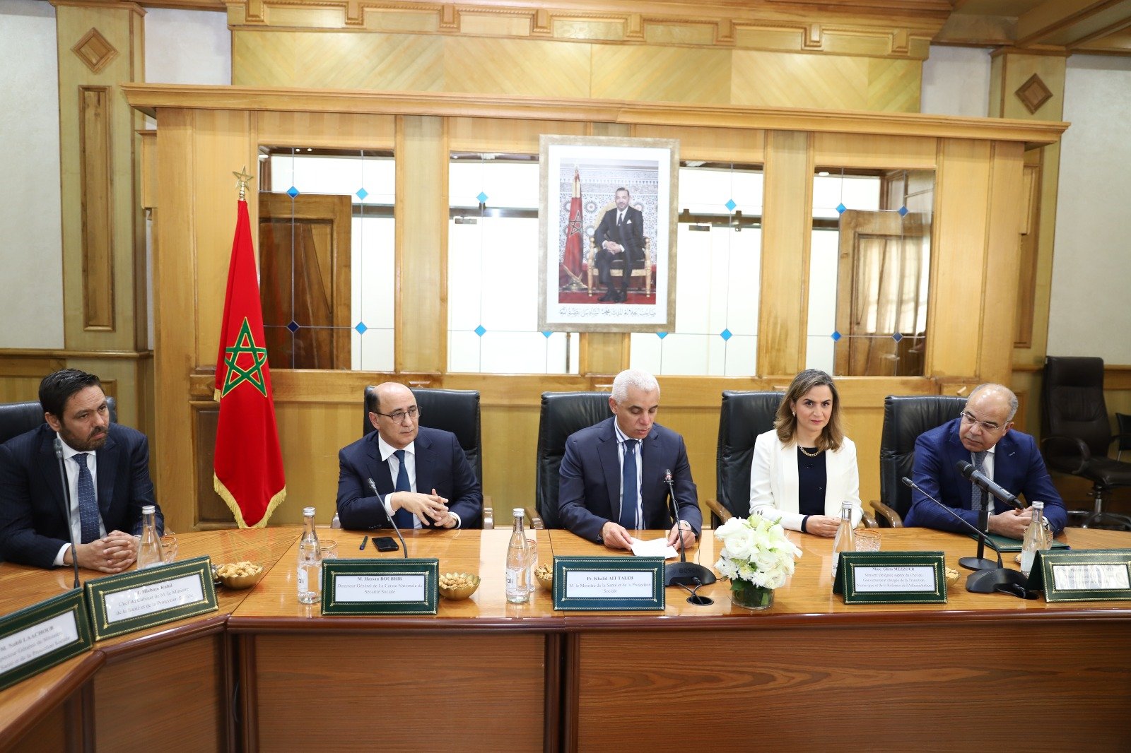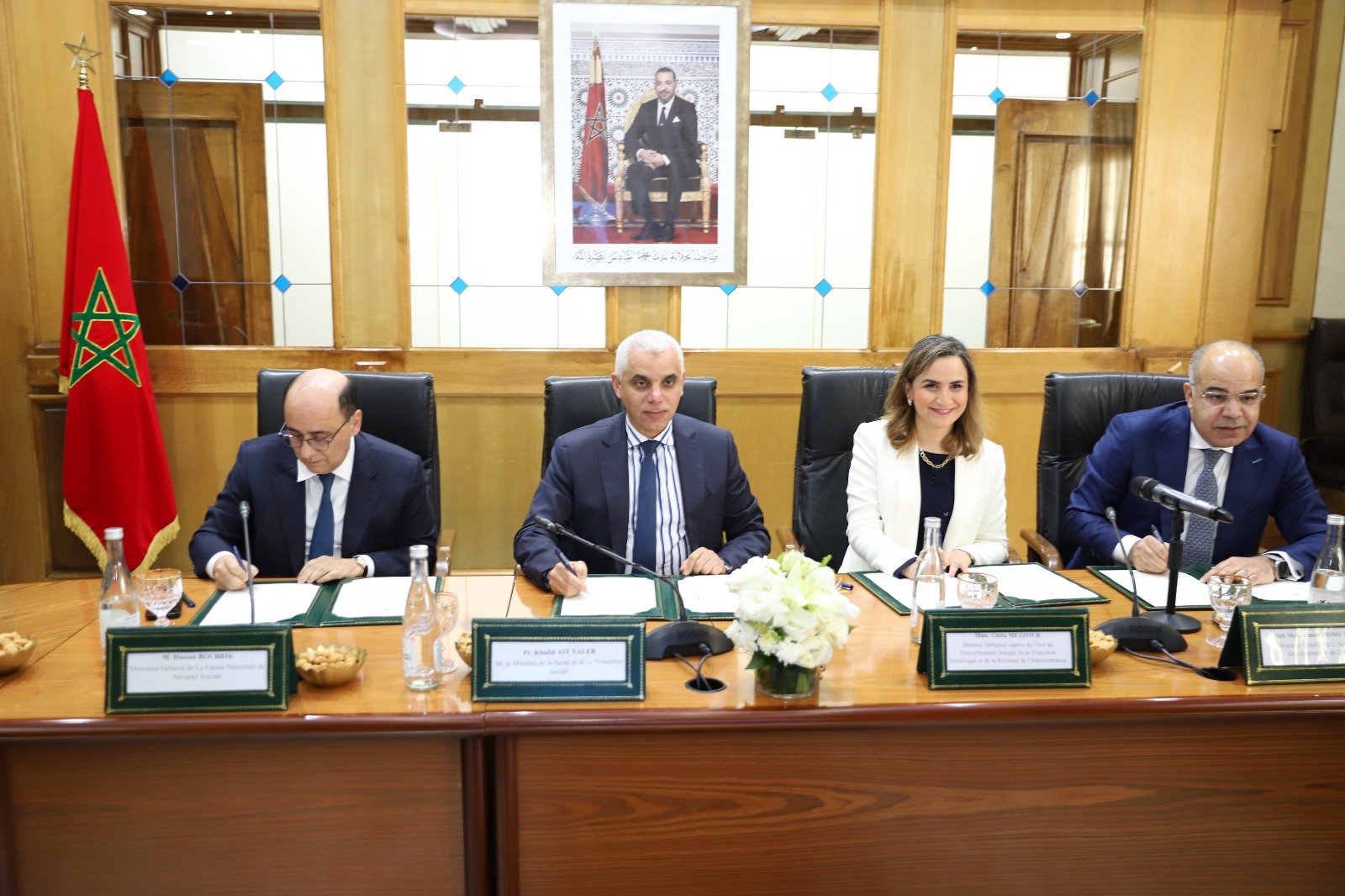 ترأس وزير الصحة والحماية الاجتماعية، البروفيسور خالد ايت طالب، بمعية الوزيرة المنتدبة لدى رئيس الحكومة المكلفة بالانتقال الرقمي وإصلاح الإدارة، غيثة مزور، والمدير العام للصندوق الوطني للضمان الاجتماعي، حسن بوبريك، والمدير العام لوكالة التنمية الرقمية، محمد الإدريسي الملياني، يومه الجمعة 02 فبراير 2024، بالرباط، مراسيم التوقيع على اتفاقية إطار للشراكة حول تنسيق تبسيط الإجراءات المتعلقة برقمنة الملف الطبي المشترك وورقة العلاجات الإلكترونية بالمؤسسات الصحية.