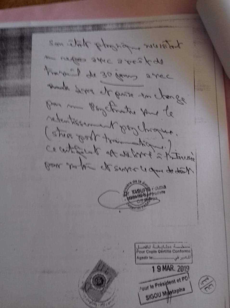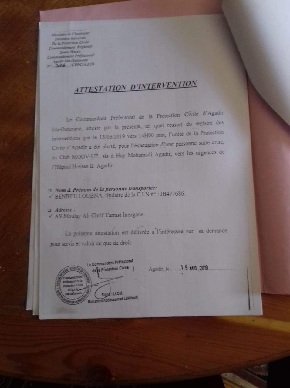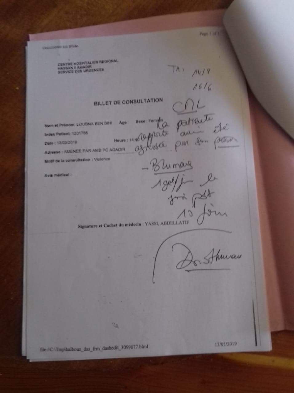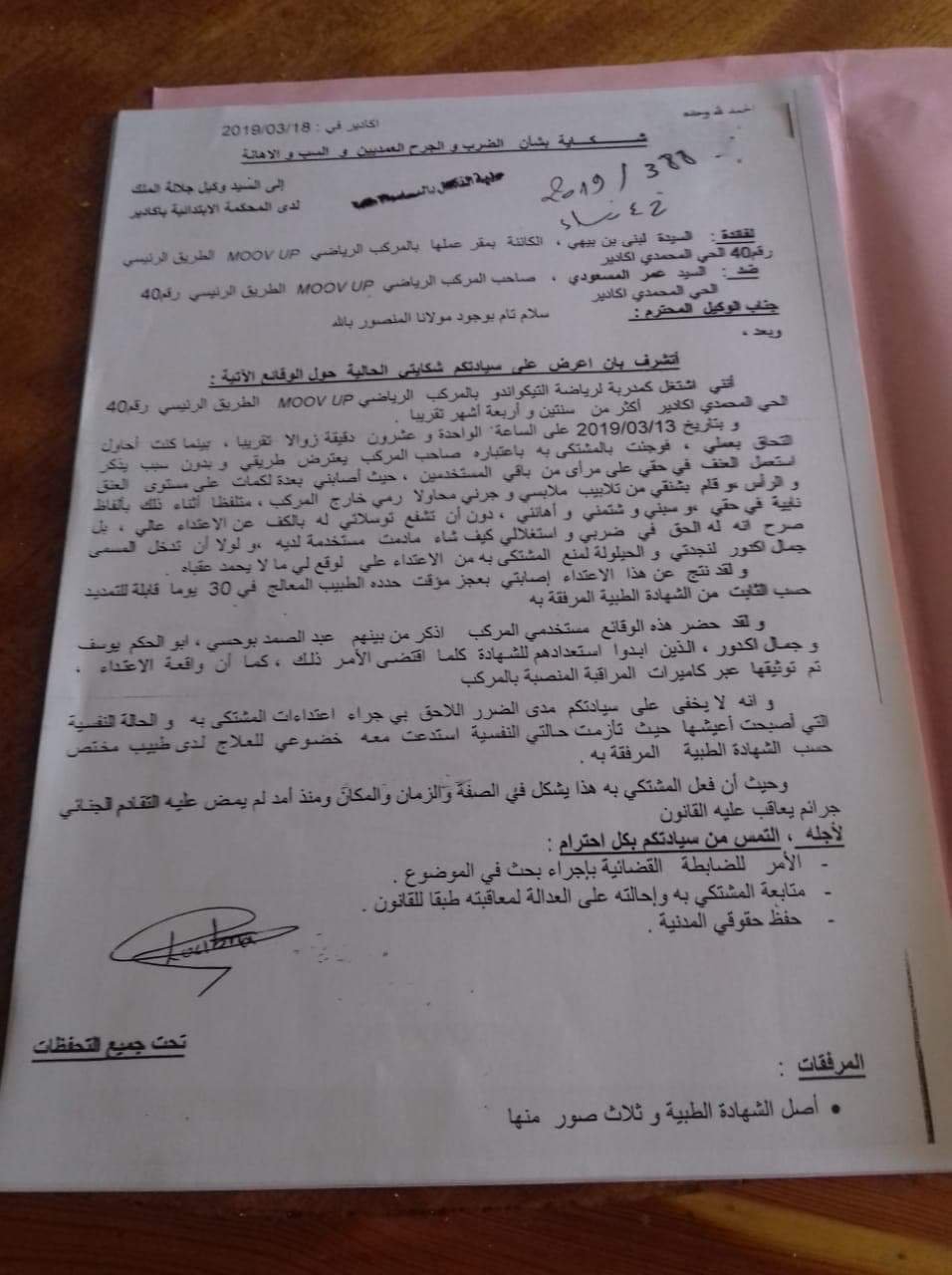 تجدر الاشارة الى ان مستخدمة تقدمت بشكاية إلى وكيل الملك نتوفر على نسخة منها مرفقة بملف طبي يثبت مدة عجز تصل 30 يوم نتيجة تعرضها لإعتداء من طرف مشغلها .