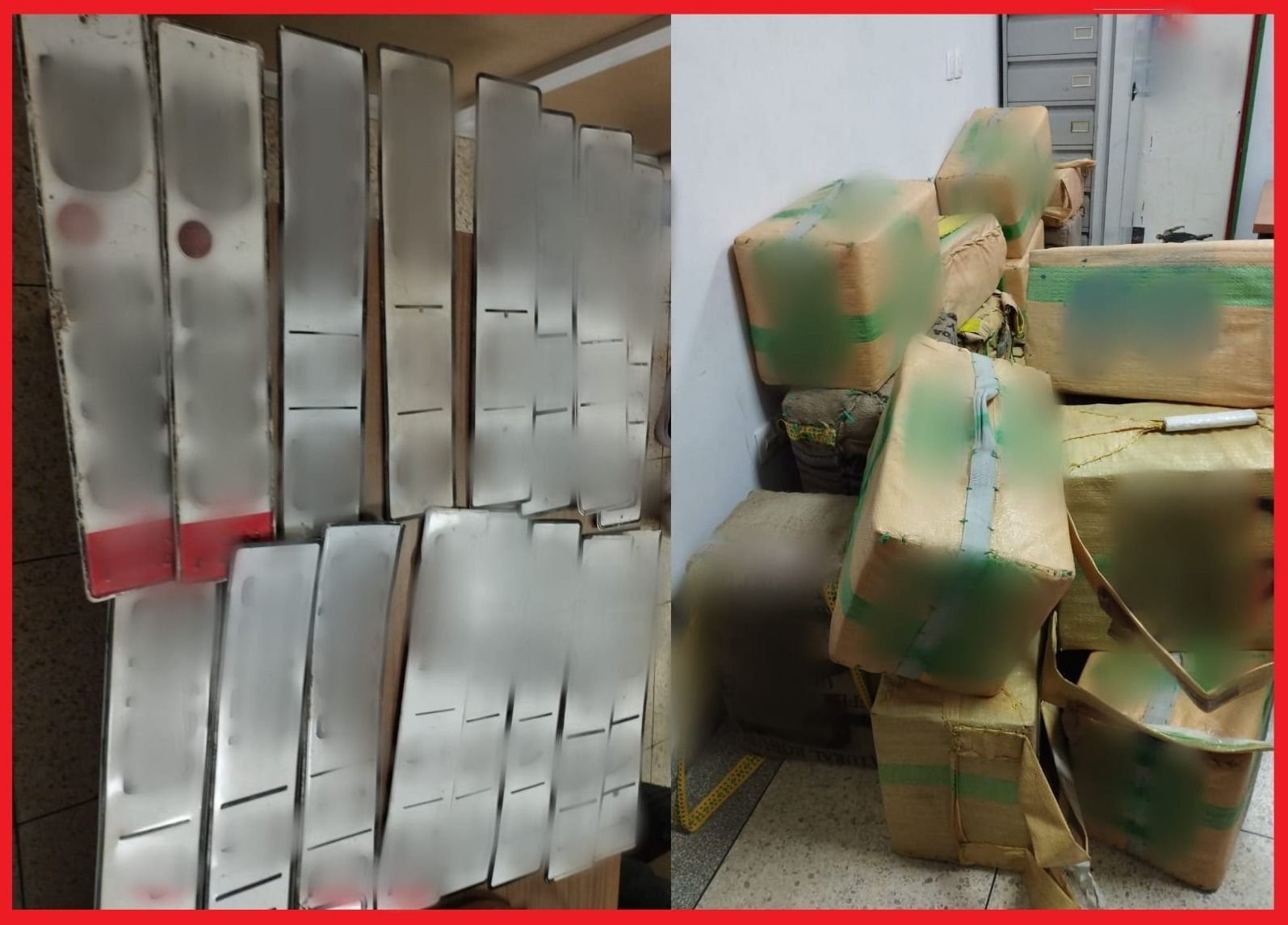 وقد تم تنفيذ هذه العملية الأمنية بشكل متزامن بمدينتي وجدة وبوعرفة، حيث أسفرت إجراءات الضبط والتفتيش المنجزة عن حجز 24 رزمة من مخدر الشيرا بلغ مجموع وزنها 690 كيلوغراما و500 غراما، علاوة عن حجز سلاح أبيض ودراجة نارية، وكذا خمس سيارات و16 لوحات ترقيم سيارات وطنية وأجنبية يجري التحقق من مصدرها.