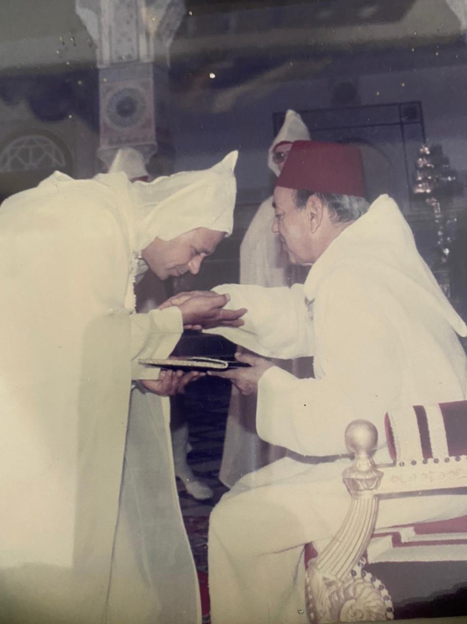 كما التقى الراحل الحسن الثاني الذي قال له ( “ارجع يا دكتور إلى الصحراء إذا أردت. ليس في قلبك غْرام واحد من الانفصال، وإذا أعطاك الإسبان أي مسؤولية تسلّمها، حتى ولو وضعوك على رأس دولة في الصحراء،) لكن بمشيئة الله في دجنبر 1975 سأشرب معكم الشاي في العيون”. جملة لم أفهمها، المهم ذهبت إلى الدار البيضاء ومنها إلى باريس، ولم أفهم ما رمى إليه الملك الراحل إلا في 16 أكتوبر 1975 عندما أعلن سيدنا عن نداء المسيرة الخضراء. كنت حينها في الداخلة مع الوالد رحمه الله في بيته، وكنا ننصت إلى نشرة الواحدة ظهرا من الرباط، كعادتنا، وعندما سمعنا نداء المسيرة من طرف الملك، في 16 أكتوبر 1975، قلت للوالد إن سيدنا سيشرب فعلا معنا الشاي في دجنبر….)