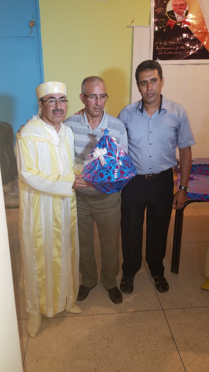 هذا وقد حضر هذا العرس التربوي المتميز، أسرة وعائلة وأصدقاء المحتفى به، وثلة خيرة من نساء ورجال التربية والتعليم، بمختلف المؤسسات التعليمية بالمدينة ، وممثل عن جمعية أمهات وآباء وأولياء التلاميذ، وممثل عن النقابة الوطنية للعليم ( ك – د – ش ) وضيوف الشرف .. تميز الحفل التربوي البهيج بفقرات مغرية جذابة، على رأسها تلاوة آيات بينات من الذكر الحكيم، فترديد النشيد الوطني المغربي ، تلاهاه مباشرة عرض شريط مصور للسيرة الذاتية للمحتفى به، ثم وصلة من الأغاني والأناشيد من أداء مجموعة صوتية، متمثلة في قدماء تلاميذ المؤسسة ، فكلمات شجية مؤثرة قيلت في حق المحتفى به من زملاء دربه التربوي .. هذا وقد توج الحفل بتقديم الهدايا للمحتفى به، في جو تربوي رائق ساده الود والصفاء والتآخي، ليختتم بحفل شاي على شرف الجميع.