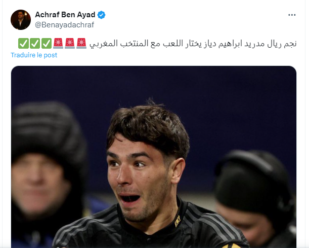 من جانبه أعلن أشرف بن عياد الخبر مؤكدا بأن المغربي ابراهيم دياز اختار تمثيل المغرب على حساب اسبانيا.