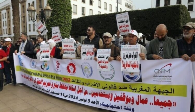 عقد المجلس الوطني للجبهة المغربية ضد قانوني الإضراب والتقاعد الملتقى الوطني أمس الأحد بالرباط، تحت شعار “لنواصل معركة التصدي للقانون التكبيلي للحق في الإضراب حتى إسقاطه، ولقانون تدمير مكتسبات منظومة الحماية الاجتماعية عامة وصناديق التقاعد خاصة”.