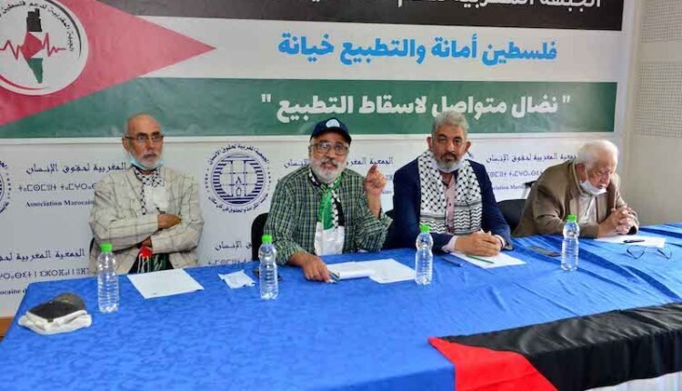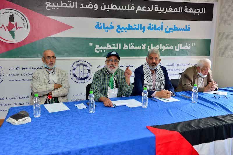 وعبرت الجبهة المغربية لدعم فلسطين وضد التطبيع عن إدانتها للاستمرار فيما وصفته بمسلسل الانبطاح والتطبيع مع كيان استعماري استيطاني وعنصري ضدا على إرادة الشعب المغربي الذي ظل على امتداد تاريخه القديم والحديث مناصرا ومكافحا مع الشعب الفلسطيني في نضاله من أجل حقوقه الثابتة والعادلة في الاستقلال والعودة وتقرير المصير وبناء الدولة الفلسطينية الديمقراطية المستقلة على كامل التراب الفلسطيني وعاصمتها القدس.