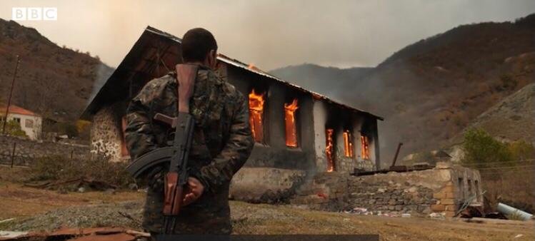 في خرق واضح و سافر للقانون الإنساني الدولي، تعمد الأرمن إحراق وتدمير المدن في إقليم ناكوني كارباخ” بعد هزيمتهم في المعركة الأخيرة والحاسمة.