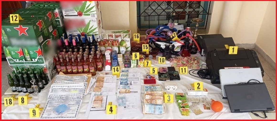 وأشار البلاغ إلى أن عمليات التفتيش المنجزة في إطار هذه القضي أسفرت عن حجز 41 قنينة كحول من مختلف الأنواع والسعات، و30 قرصا من مخدر الإكستازي، وجرعات من مخدر الكوكايين، وقنينات نرجيلة وأكياس من المعسل، بالإضافة إلى آلات موسيقية ومعدات للصوت.