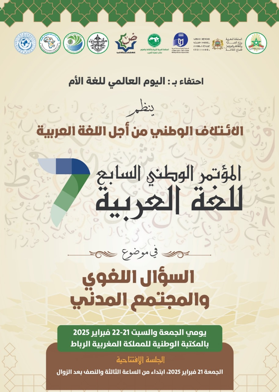 ينظم الائتلاف الوطني من أجل اللغة العربية، بالتعاون مع عدد من المؤسسات الوطنية والدولية، المؤتمر الوطني السابع للغة العربية يومي 21 و22 فبراير 2025، بالمكتبة الوطنية للمملكة المغربية بالرباط، تحت شعار “السؤال اللغوي والمجتمع المدني”، وذلك بهدف مناقشة التحديات التي تواجه اللغة العربية في العصر الحديث ودور المجتمع المدني في تعزيز مكانتها في مختلف المجالات.