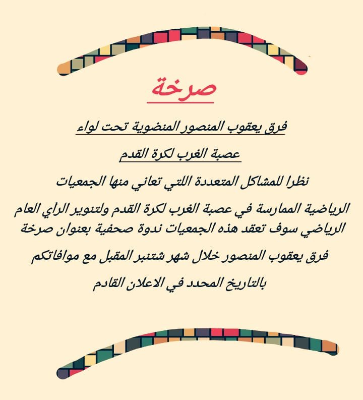 وفي بيان “صرخة” للجمعيات الرياضية إلى الرأي العام توصلت جريدة “بالواضح” بنسخة منه، أنه من التجليات الصارخة لاختلال المشهد الرياضي بيعقوب المنصور: