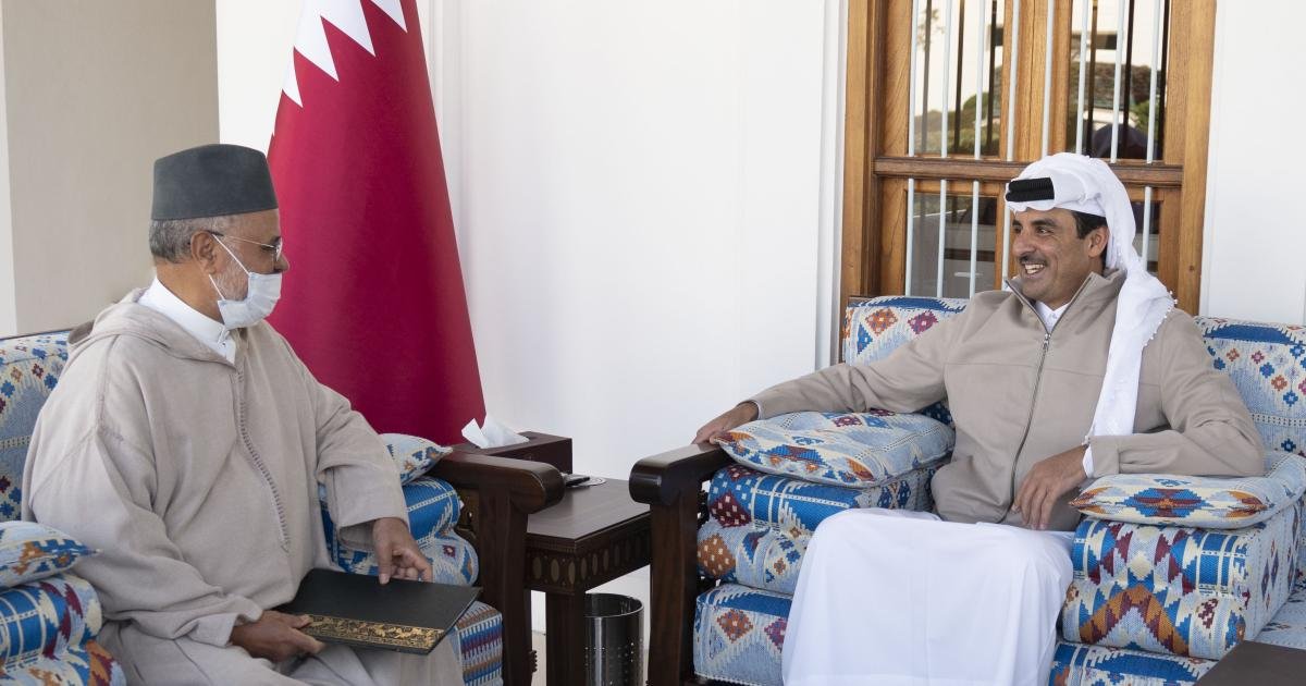 جاء ذلك في لقاء جمع أمير قطر بالريسوني والوفد المرافق له، في مجلس الشيخ عبدالله بن جاسم في الديوان الأميري القطري، وفق بيان للديوان.