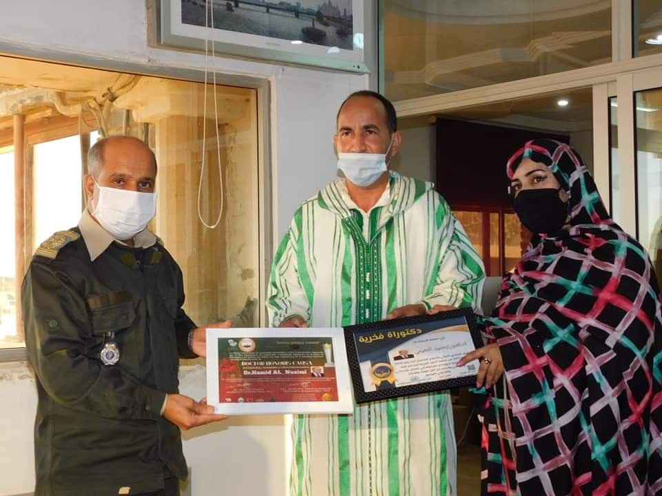 وبإعتبار المنظمات و الهيئات الحقوقية و المؤسسات غير الحكومية عنصرا فاعلا في الدفاع عن الوحدة الترابية والمقدسات الوطنية كمجال من مجالات الدبلوماسية الموازية تم في هذا الإجتماع تكريم عامل صاحب الجلالة على إقليم السمارة من طرف أعضاء المنظمة الدولية لمتطوعي الأمم المتحدة كعربون إمتنان وتقدير إعترافا منهم لما يقوم به من مجهودات جبارة خدمة للمصالح العليا للمملكة المغربية.