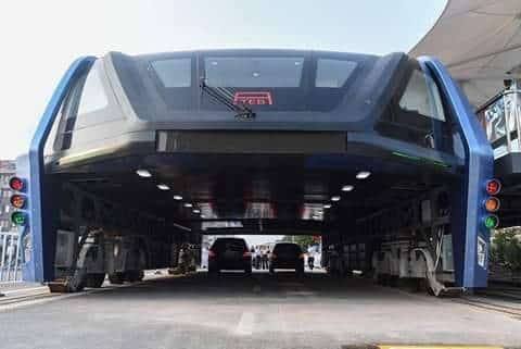 الصين تبدأ تجربة أول حافلة في العالم تسير فوق السيارات (صور)