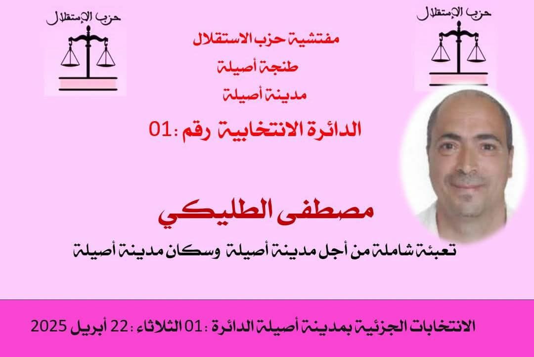 في قلب مدينة أصيلة، حيث تمتزج الأصالة بالتاريخ، وتحيط الأسوار البرتغالية بالمدينة العتيقة، يطرح المرشح مصطفى الطليكي عن حزب الاستقلال برنامجاً طموحاً يراهن من خلاله على المؤهلات الثقافية والتراثية للمدينة للنهوض بالسياحة، وتحقيق تنمية اقتصادية واجتماعية شاملة.