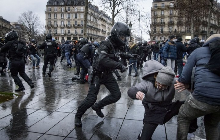وأضافت اليومية الفرنسية أن وحدة (ريد) منتشرة بقرب من (مونت سان مارتان)، ولأسباب لم يتم توضيحها بعد، استخدمت بندقية الكرات الوامضة، مسجلة أن إحدى المقذوفات أصابت رجلا بجروح خطيرة، والذي يوجد حاليا في حالة صحية حرجة.
