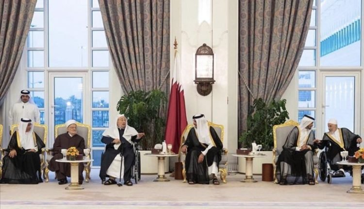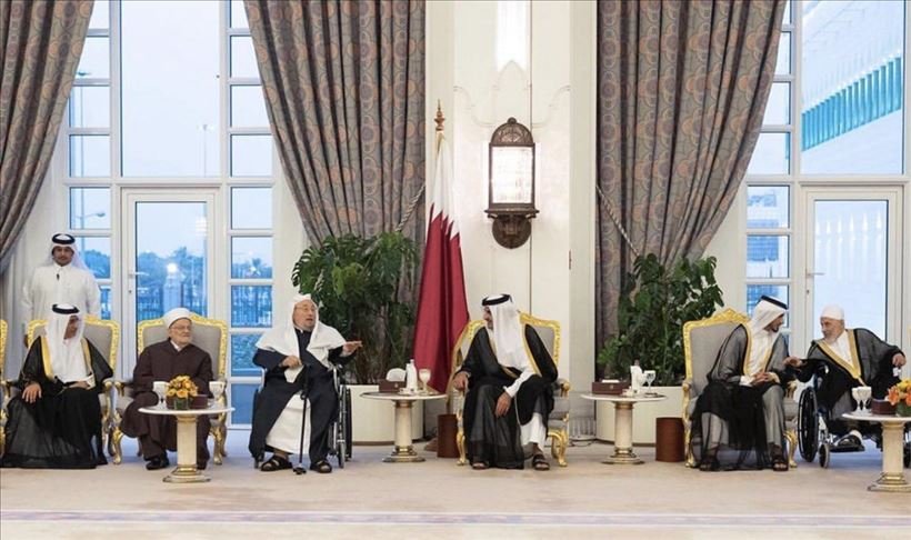 وأظهرت صور نشرها الديوان الأميري أن من بين الحضور الشيخ يوسف القرضاوي، الرئيس السابق لاتحاد علماء المسلمين، حيث جلس على يمين أمير قطر.