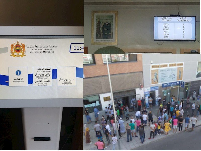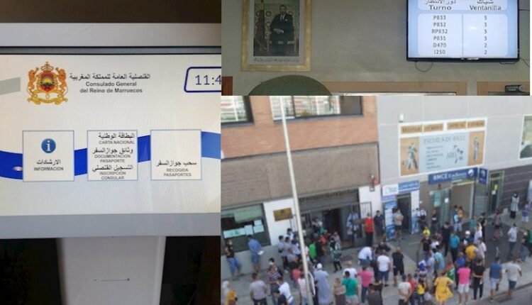 على الرغم من تبرؤ القنصلية العامة للمملكة مما يجري، عبر إعلان معلق على زجاج البناية إلى العموم من خلال عبارة “لاتُقبل إلا الأرقام المسلمة من طرف هذه القنصلية العامة”، وذلك باللغتين العربية والاسبانية، إلا أن أغلب الطلائع الاولى للأرقام تجدها مرهونة بيد سماسرة المحلات الخدماتية المجاورة لبوابة القنصلية، مما يطرح علامات استفهام حول الكيفية التي يحصلون بها على تلك الأرقام والاسترزاق من خلالها على حساب حاجة المواطنين الشديدة إلى إنجاز وثائقهم الإدارية. فتحت ضغط بُعد مسافة مقر القنصلية عن محل سكنى المواطنين وتجنب طول انتظار دورهم أمام الشبابيك، يجدون أنفسهم فريسة سهلة المنال أمام أصحاب السمسرة الخدماتية، الذين بفعلهم هذا يتسببون في عدم المساواة بين المواطنين داخل قاعة الانتظار، فالذي يسحب رقمه من السماسرة يمكن أن ينجز وثائقه في أقل فترة مقارنة مع الذي يحصل عليه داخل القنصلية، كما يتسبب السماسرة في ارباك نظام الترقيم، حيث تظهر على شاشة الانتظار أرقام لا وجود لأصحابها داخل القاعة باعتبارها لاتزال حبيسة محلات السماسرة، وقد يكتشف حامل أحدها إلا بعد فوات أوان دوره داخل القنصلية.