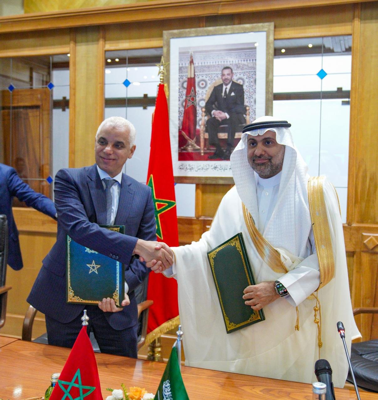 استقبل وزير الصحة والحماية الاجتماعية، البروفيسور خالد آيت طالب، يوم الجمعة 16 أغسطس 2024 بالرباط، وزير الصحة السعودي، الدكتور فهد بن عبد الرحمان بن داحس الجلاجل، والوفد المرافق له، الذي يقوم بزيارة عمل إلى المغرب.