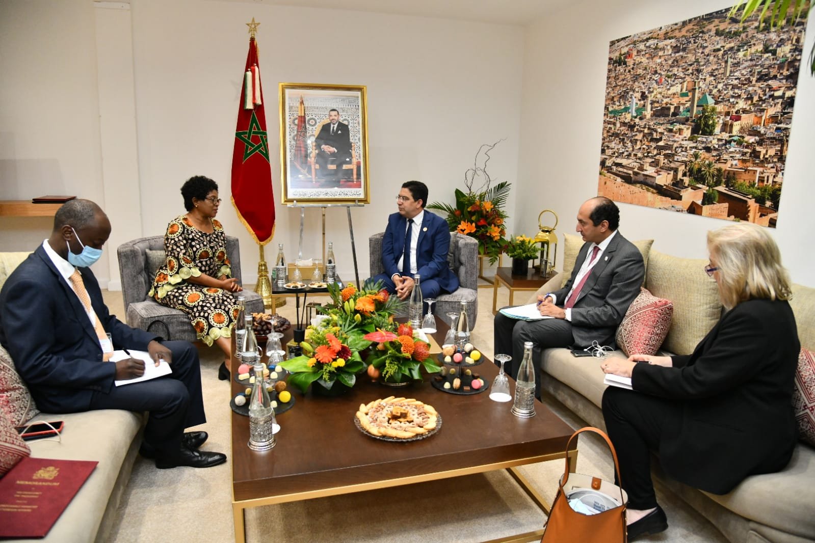 وذكر بيان مشترك، صدر عقب لقاء بين وزيري الشؤون الخارجية، على هامش مشاركتهما في الدورة الـ14 لقمة الأعمال الأمريكية – الأفريقية، المنعقدة ما بين 19 و22 يوليوز بمراكش، أن بوريطة، وتيمبو أعربا عن ارتياحهما إزاء متانة علاقات الصداقة والتضامن المتبادل التي تجمع بين البلدين منذ أمد طويل وبين سلطاتهما العليا، وعبرا عن التزام الحكومتين بالعمل معا للارتقاء بالعلاقات المغربية – الملاوية إلى آفاق أرحب.