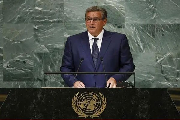 وأوضح أخنوش، في كلمة باسم المغرب أمام أشغال الدورة الـ77 للجمعية العامة للأمم المتحدة، « تجدد المملكة المغربية إلتزامها بإيجاد حل سياسي نهائي للنزاع الإقليمي المفتعل حول الصحراء المغربية، يقوم على أساس المبادرة المغربية للحكم الذاتي، كحل وحيد وأوحد لهذا النزاع، وذلك في إطار الوحدة الترابية والسيادة الوطنية للمملكة».