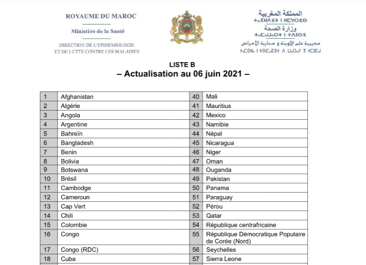 وتشمل اللائحة ” أ “، كل البلدان التي تتوفر على مؤشرات إيجابية فيما يتعلق بالتحكم في الحالة الوبائية، وخاصة انتشار الطفرات المتحورة للفيروس.