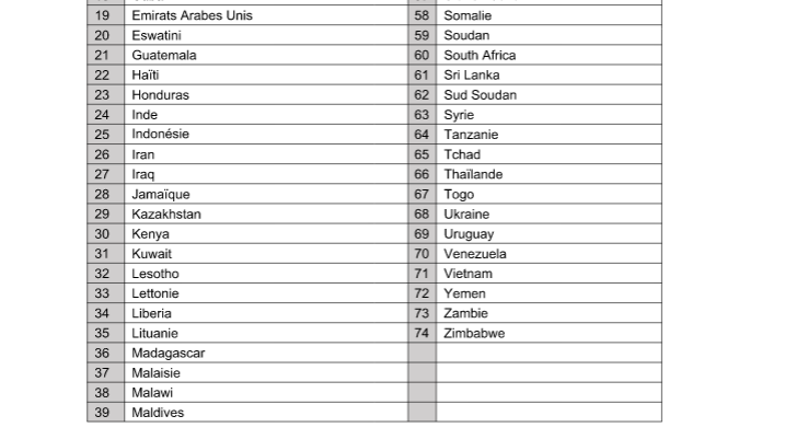 وفيما يلي قائمة الدولة المدرجة في اللائحتين “أ” و “ب” التي ستخضع لتحيين دوري، على الأقل مرتين في الشهر كلما اقتضت الضرورة ذلك.