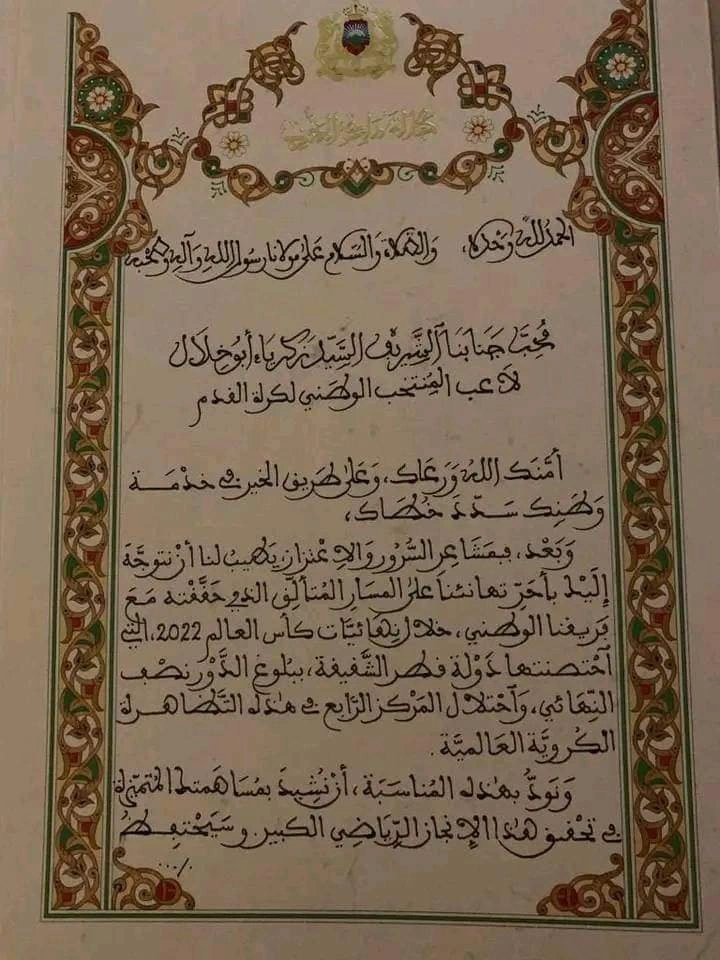 على خلفية الجدل الدائر والغضب العارم عن المقال المسيء إلى لاعب المنتخب الوطني زكرياء أيو خلال من قبل أحد المواقع الالكترونية، وما رافق ذلك من تضامن شعبي واسع لفائدة اللاعب المذكور، انتشرت على مواقع التواصل رسالة التهنة الملكية إلى غرار الأربعاء الماضي 21 دجنبر الجاري، أي قبل نشر المقال المثير للجدل.