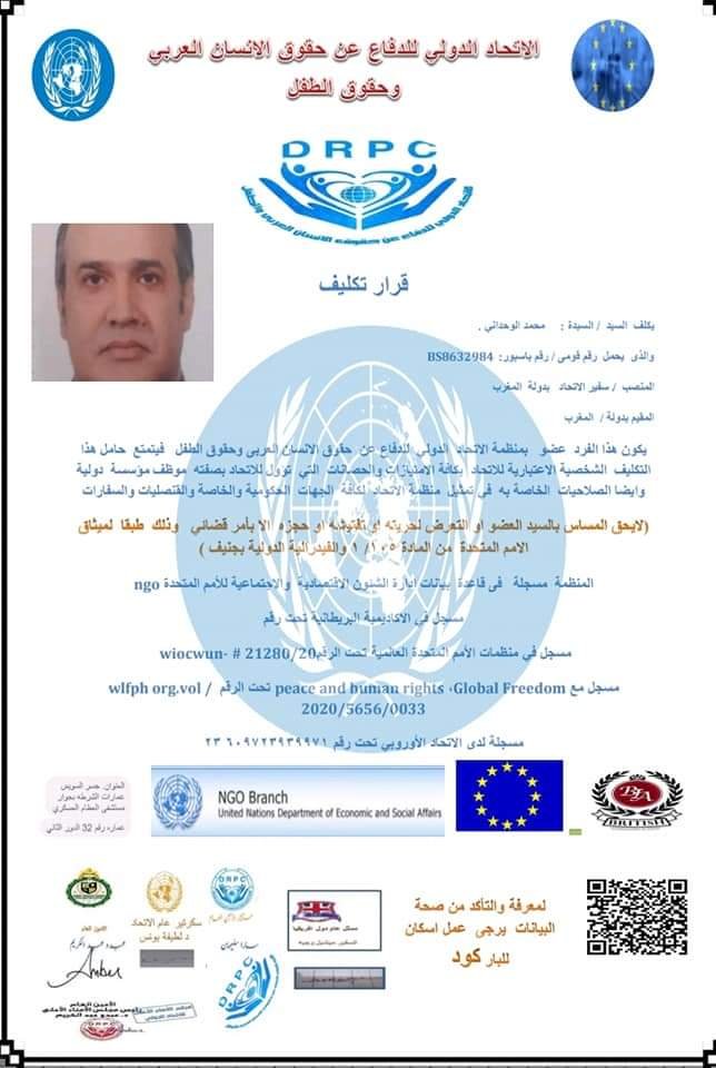 تم اعتماد الناشط الحقوقي و معتقل الرأي السابق المغربي محمد الوحداني سفيرا رسميا للمنظمة العالمية: الاتحاد الدولي للدفاع عن حقوق الإنسان وحقوق الطفل ، بالمملكة المغربية.