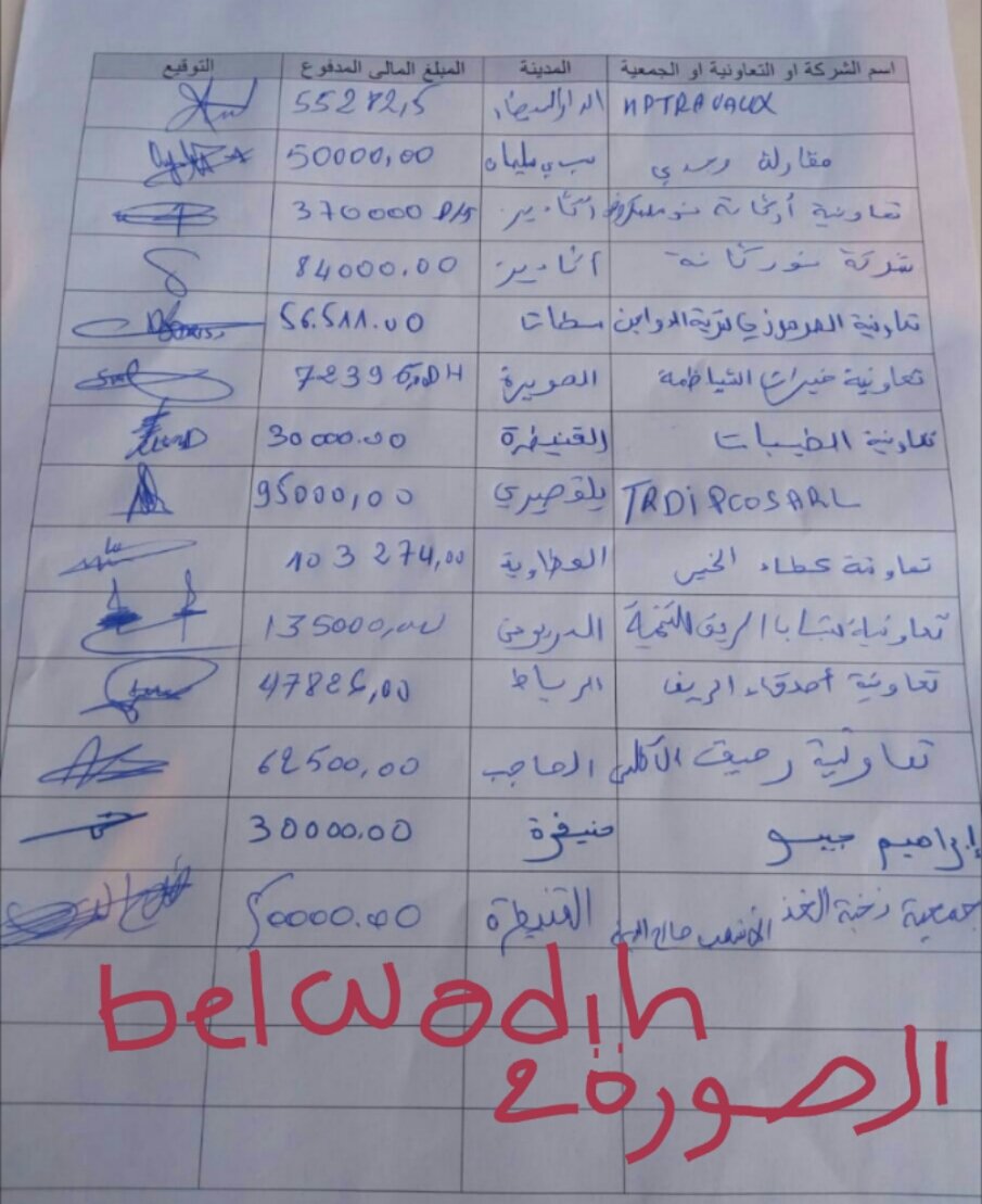 مركز تفعيل المشاريع المشبوه ارسل الينا بلاغا يؤكد انه يتعرض للابتزاز والتشهير من طرف بعض الأشخاص لكن واحسرتاه نسي أن يقول أن من يحتجون اليوم أمام مقره هم من وقع معهم اتفاقات تقضي بتمويل مشاريعهم ويقول المثل شكون دفعك طيح لما وقعت وانت لا تتوفر على المال لتسديد التزاماتك، لما اليوم تهرب من مسؤوليتك كشريك عليه التزامات (الصورة 2). تبين القيمة المالية التي عليك اداءها لكل مواطن جاء يحتج أمام شركتك.
