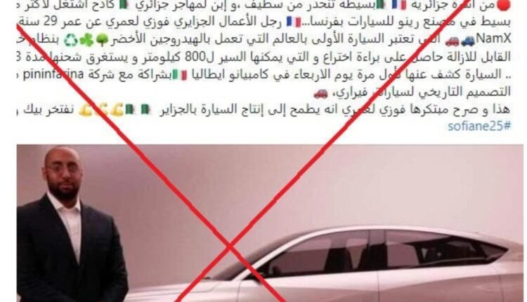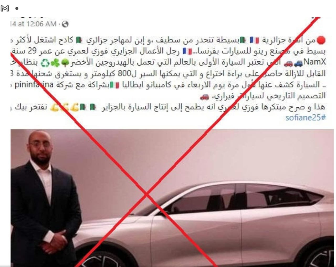 فلمن تعود الصورة؟ تتساءل “الجزائر تايمز” لترد بأن التفتيش عن الصورة أظهر أنها منشورة في عدة مواقع إخبارية، تشير إلى أنها تعود لمقاول يدعى فوزي النجاح، كشف في الآونة الأخيرة عن نموذج لسيارة مبتكرة تعمل بالهيدروجين صمّمه مع شركاء أوروبيين ومغاربة. وهي صورة ملتقطة من موقع صحيفة “لو باريزيان” الفرنسي..