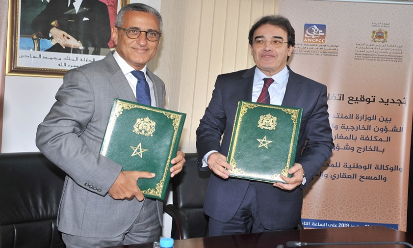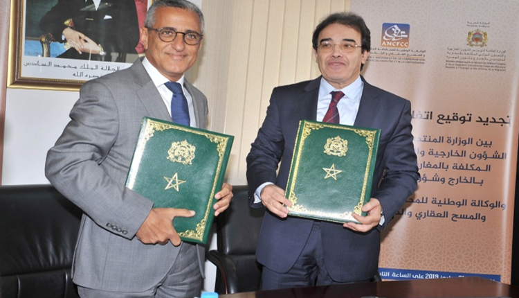 احتضنت الوزارة المنتدبة المكلفة بالمغاربة المقيمين بالخارج وشؤون الهجرة، صباح اليوم الإثنين فاتح يوليوز 2019 بمقرها المركزي بالرباط، مراسم توقيع اتفاقية تجديد إطار الشراكة بينها وبين الوكالة الوطنية للمحافظة العقارية والمسح العقاري والخرائطية، وذلك بهدف تحسين الخدمات المقدمة لفائدة المغاربة المقيمين بالخارج.