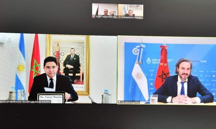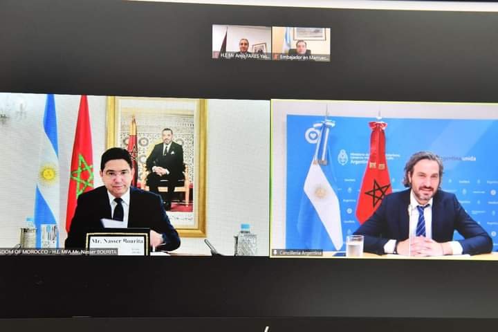 ورحب الوزيران خلال مباحثاتهما اليوم الجمعة، عبر تقنية الاتصال المرئي، بالدينامية الإيجابية والمتواصلة التي تميز العلاقات المغربية-الأرجنتينية، والتي يعكسها الحوار السياسي البناء والسلس القائم على تقارب وجهات النظر تجاه العديد من القضايا الإقليمية والدولية.