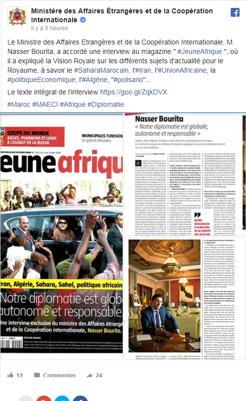 ووصف وزير خارجية المغرب خطاب الجزائر حول الصحراء المغربية بـ“البليد” و”إنكار” للحقيقة الخارجية، وأنه يعانى هوساً مرضياً بالقول إن نزاع الصحراء يخص المغرب والبوليساريو فقط”.