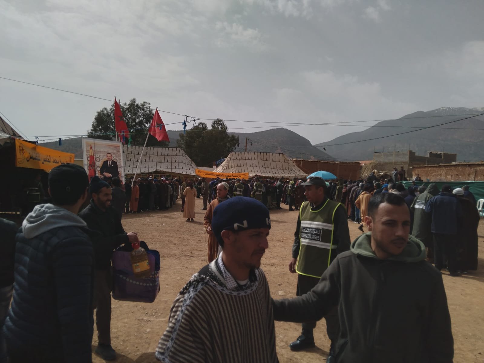 يشار إلى أن مقر عمالة تارودانت استقبل، أمس الاثنين، المساعدات الإنسانية الاستثنائية الموجه لـ10 آلاف أسرة تنحدر من 8 جماعات بالإقليم، والتي تأتي تنفيذا للتعليمات السامية لصاحب الجلالة الملك محمد السادس، إثر التساقطات الثلجية الهامة التي شهدتها أقاليم زاكورة وورزازات وتارودانت.وكان صاحب الجلالة الملك محمد السادس، قد أعطى تعليماته السامية بإطلاق عملية مساعدة عاجلة لفائدة السكان المتضررين من موجة البرد الحالية والتساقطات الثلجية، حسب بلاغ لمؤسسة محمد الخامس للتضامن.