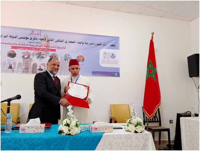 وهذا وتوجه المنسق البيداغوجي لماستر العلوم الشرعية والبناء الحضاري الدكتور عبد الرزاق الجاي، بكلمات الشكر لكافة المسْهمين في إنجاح الملتقى خاصة السلطات المحلية، مع تقديم شهادات التقدير لكافة الأساتذة المؤطرين وأعضاء اللجنة التنظيمية وشهادات الحضور للطلبة الباحثين، بعدها تمت تلاوة برقية ولاء وإخلاص مرفوعة إلى أمير المؤمنين باسم المشاركين في الندوة العلمية، والدعاء الصالح له بالنصر والتمكين ودوام الصحة والعافية.