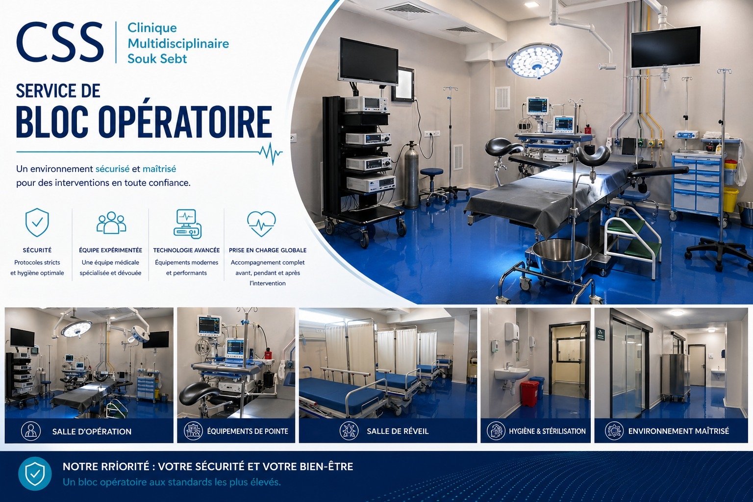 – المركب الجراحي حيث يضم أربع (4) قاعات عمليات مجهزة بأحدث التقنيات الجراحية.