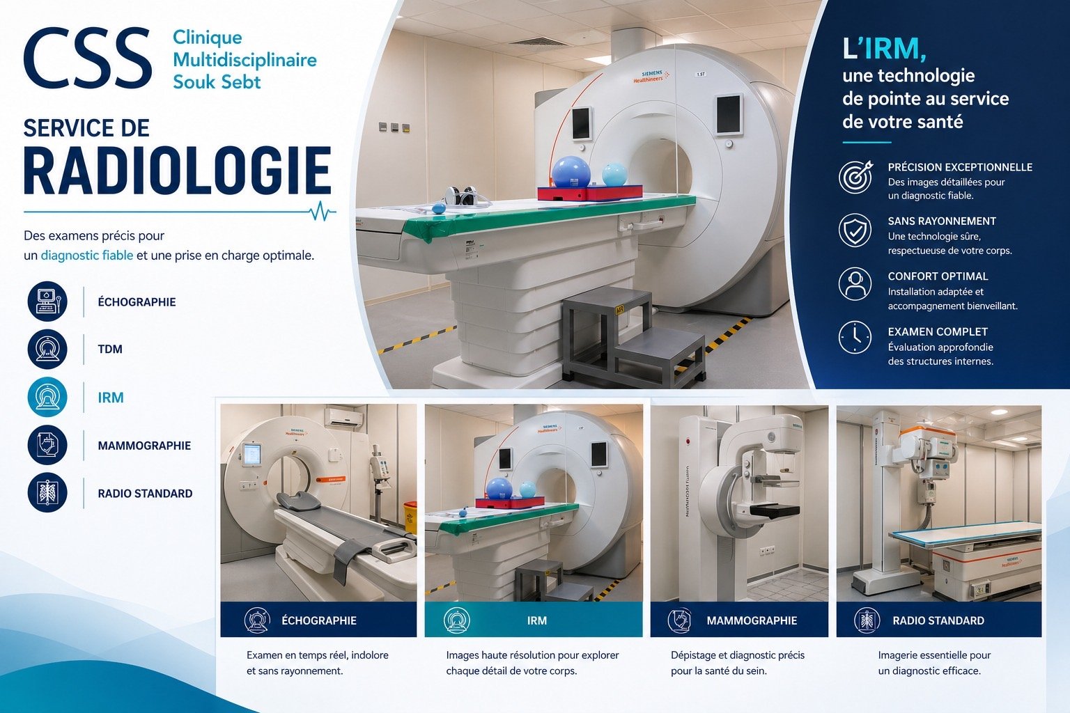 – قسم الأشعة المتكامل: يضم جهاز الرنين المغناطيسي (IRM) وجهاز الفحص المقطعي (Scanner TDM) من شركة Siemens العالمية، مما يضمن دقة وسرعة في التشخيص….