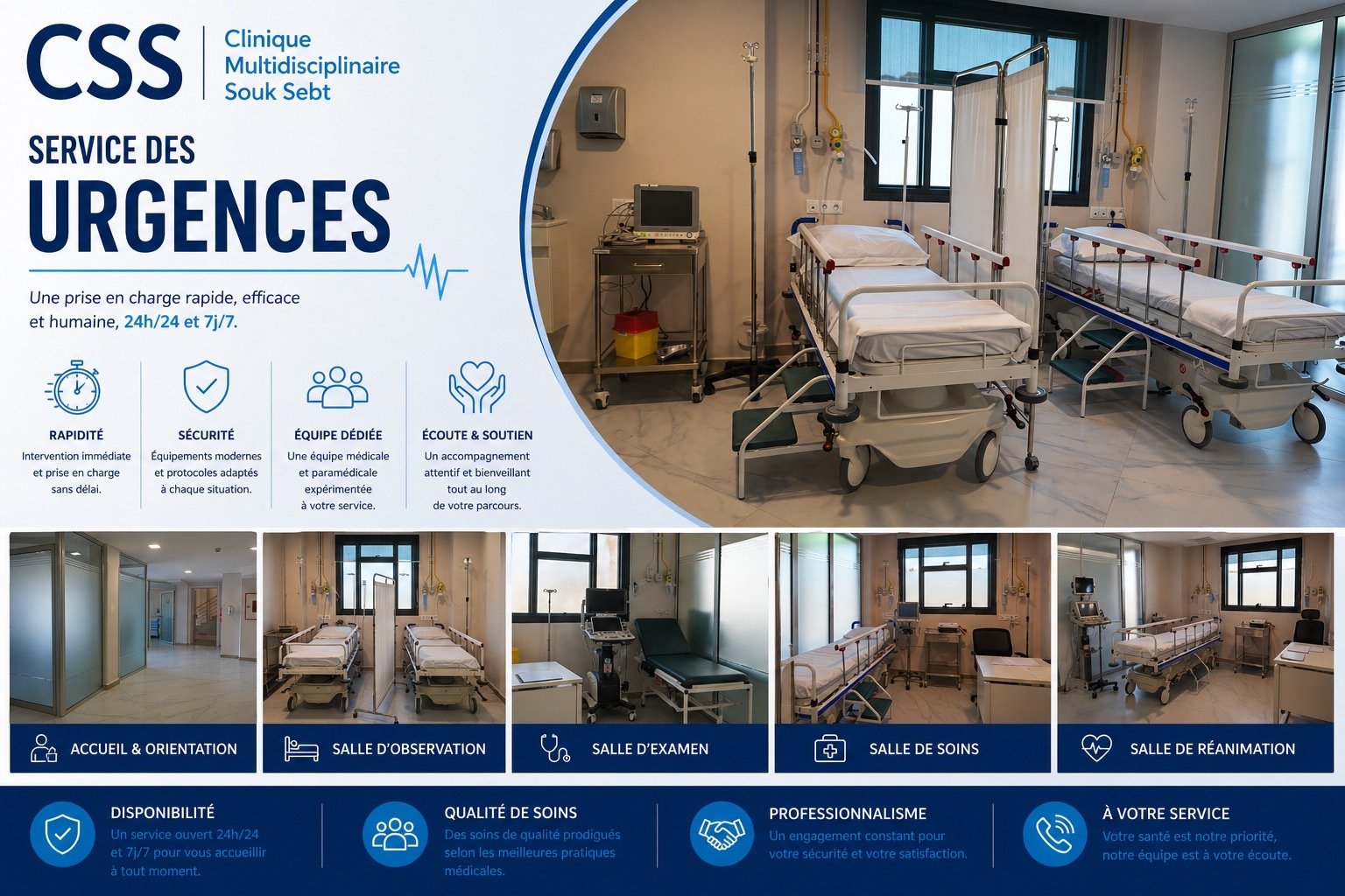 – المستعجلات: خدمة مستمرة 24/24 ساعة طيلة أيام الأسبوع لضمان التدخل الفوري في الحالات الطارئة….