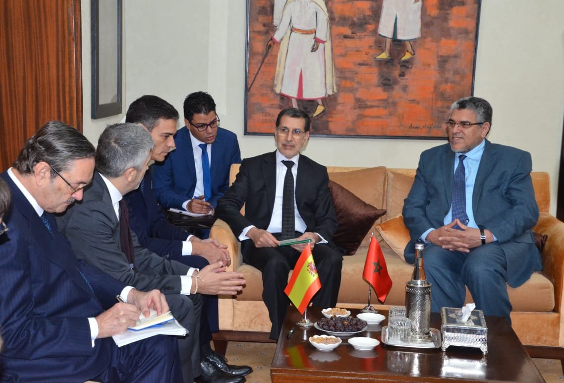 أجرى رئيس الحكومة سعد الدين العثماني، صباح يوم الإثنين 19 نونبر 2018 بمقر رئاسة الحكومة، مباحثات مع نظيره رئيس الحكومة الإسبانية بيدرو سانشيز Pedro Sanchez، الذي حل بالمغرب صباح يومه الإثنين على رأس وفد هام في إطار زيارة عمل وصداقة للمملكة، هي الأولى من نوعها مند توليه مهامه على رأس الحكومة الإسبانية. وتناولت المباحثات مختلف أوجه علاقات الصداقة والتعاون التي تجمع بين المملكتين، وكذا عددا من قضايا الساعة الإقليمية والدولية ذات الاهتمام المشتركـ. وأشاد الجانبان في هذا الإطار بالمستوى المتميز لعلاقات الصداقة وحسن الجوار التي تجمع بين المملكتين المغربية والإسبانية وبالدينامية التي يعرفها التعاون الثنائي في العديد من المجالات، حيث سجلا وجود إمكانيات هامة لتعزيز الاستثمارات وتشجيع الشراكات بين الفاعلين الاقتصاديين في البلدين، واتفقا في هذا الصدد على تنظيم منتدى لرجال الأعمال في فرصة قريبة يمكن من استثمار المناخ المشجع للمبادرة بين البلدين. واعتبر رئيس الحكومة ونظيره الإسباني أن الدورة المقبلة للاجتماع عالي المستوى المغربي الإسباني، والتي ستحتضنها الرباط خلال سنة 2019، ستشكل فرصة هامة لتوسيع التعاون الثنائي لمجالات جديدة واعدة، في أفق الارتقاء بالعلاقات بين البلدين لمستوى الشراكة الاستراتيجية. وسجل الجانبان من جهة أخرى تطابق وجهات نظر الجارين بخصوص العديد من القضايا الإقليمية والدولية ذات الاهتمام المشترك، وخاصة فيما يتعلق بموقفهما تجاه معالجة إشكالية الهجرة غير الشرعية، في ارتباطها بتوفير ظروف الأمن والاستقرار والتنمية في المناطق مصدر المهاجرين، وكذا المسؤولية المشتركة للدول المصدرة ودول العبور والدول التي يقصدها المهاجرون، في العمل جنبا إلى جنب لإيجاد حلول ملائمة لهذه الإشكالية. وذكر السيد رئيس الحكومة بالمقاربة الإنسانية التي ينهجها المغرب في هذا الإطار، تحت قيادة الملك محمد السادس وانخراط المملكة في العديد من المبادرات الرامية لتوفير ظروف التنمية للحد من تفاقم مآسي الهجرة، وخاصة المبادرة الإفريقية « 3S » التي تم إطلاقها على هامش قمة المناخ COP22 والتي يقودها المغرب والسنغال، والتي تهدف على الخصوص لمحاربة التصحر عبر استصلاح ما يناهز 10 مليون هكتار من الأراضي غير المستغلة في الدول مصدر الهجرة، مما سيمكن من خلق حوالي 2 مليون فرصة عمل ستساعد على توفير شروط الاستقرار والتنمية بهذه المناطق. وأشاد السيد رئيس الحكومة بدعم اسبانيا لهده المبادرة، وكذلك بعزم رئيس الحكومة الإسبانية المشاركة في اللقاء الدولي حول الهجرة المرتقب أن تحتضنه مدينة مراكش يومي 10 و11 دجنبر المقبل. كما تطرق الجانبان للشراكة المغربية الأوروبية، حيث عبر رئيس الحكومة الإسبانية عن دعم بلاده لتجديد الاتفاقيات التي تربط المملكة المغربية بالاتحاد الأوروبي في مجالات الصيد البحري والفلاحة على الخصوص، كما عبر عن اهتمام بلاده بتعزيز الربط بين شبكتي نقل الطاقة الكهربائية للبلدين بخط ثالث. وتطرق الجانبان للتعاون في المجال الثقافي، حيث عبر رئيس الحكومة الإسبانية عن امتنان بلاده لاستضافة إسبانيا كضيف شرف للدورة المقبلة للمعرض الدولي للكتاب بالدار البيضاء، وعن ترحيبه برغبة المملكة المغربية تنظيم تظاهرات ثقافية في مجموعة من المدن الإسبانية، كما أعلن عن استعداد بلاده للرفع من عدد المنح الدراسية لفائدة الطلبة المغاربة. وبخصوص قضية الوحدة الترابية للمملكة، جدد رئيس الحكومة الإسبانية دعم بلاده لموقف المغرب ولجهود منظمة الأمم المتحدة الرامية لإيجاد حل لهذه القضية، مذكرا بمواقف الحكومة الإسبانية والحزب الاشتراكي العمالي الإسباني التي كانت دائما تدافع عن سيادة المملكة الإسبانية وسيادة الدول الأخرى من حلفائها. وأكد الجانبان أخيرا على الدور الذي يمكن أن يقوم به البلدان الجاران، باعتبار خصوصيتهما، في تعزيز التقارب بين القارتين الإفريقية والأوروبية. حضر هذه المباحثات على الخصوص كل من وزير