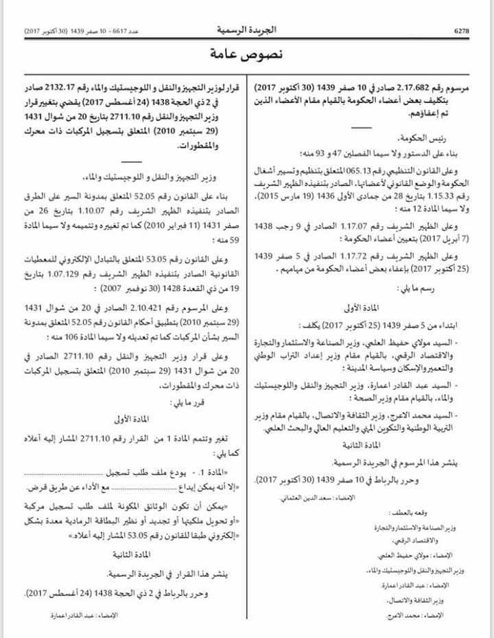 بناء على مقتضيات المرسوم رقم 2.17.682 القاضي بتكليف بعض أعضاء الحكومة مؤقتا بالقيام مقام الأعضاء الذين تم إعفاؤهم، فقد تم تكليف عبد القادر اعمارة عن حزب العدالة والتنمية وزيرا للصحة مكان المعفي الحسين الوردي عن حزب التقدم والاشتراكية.