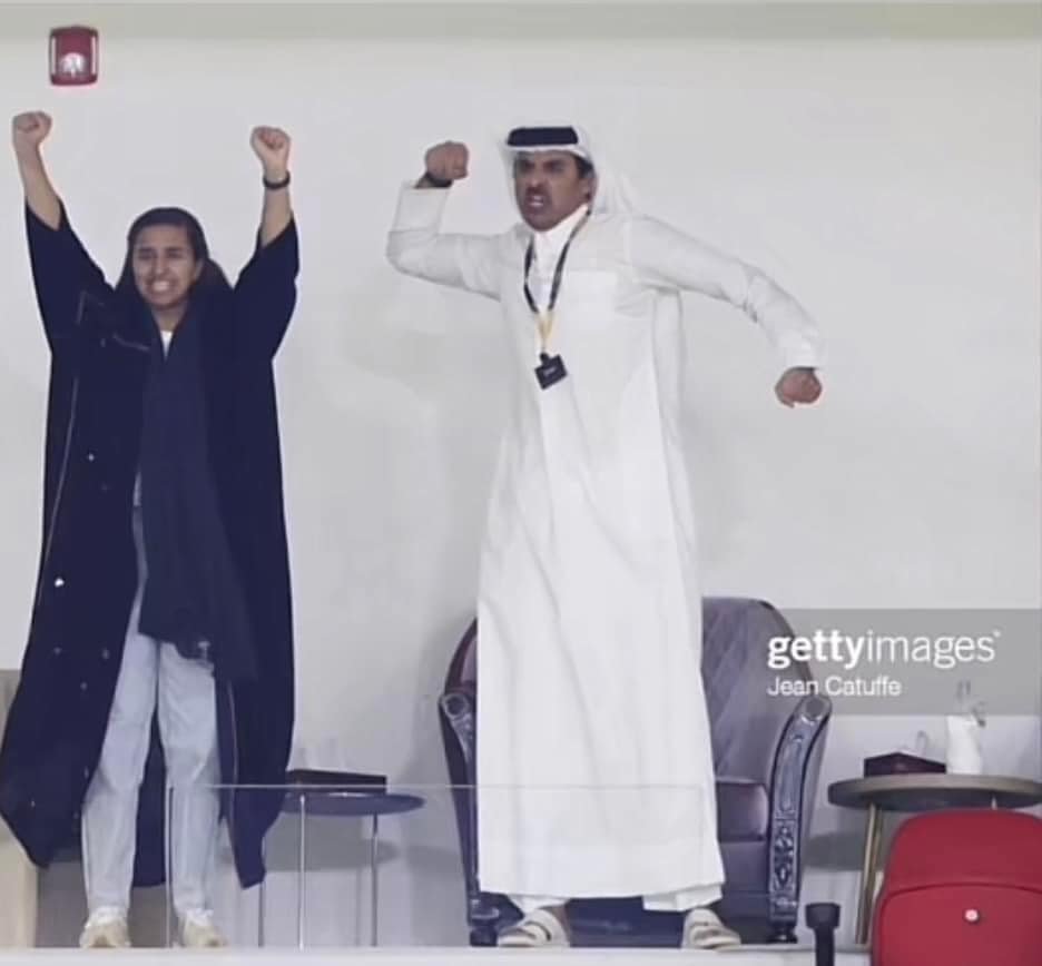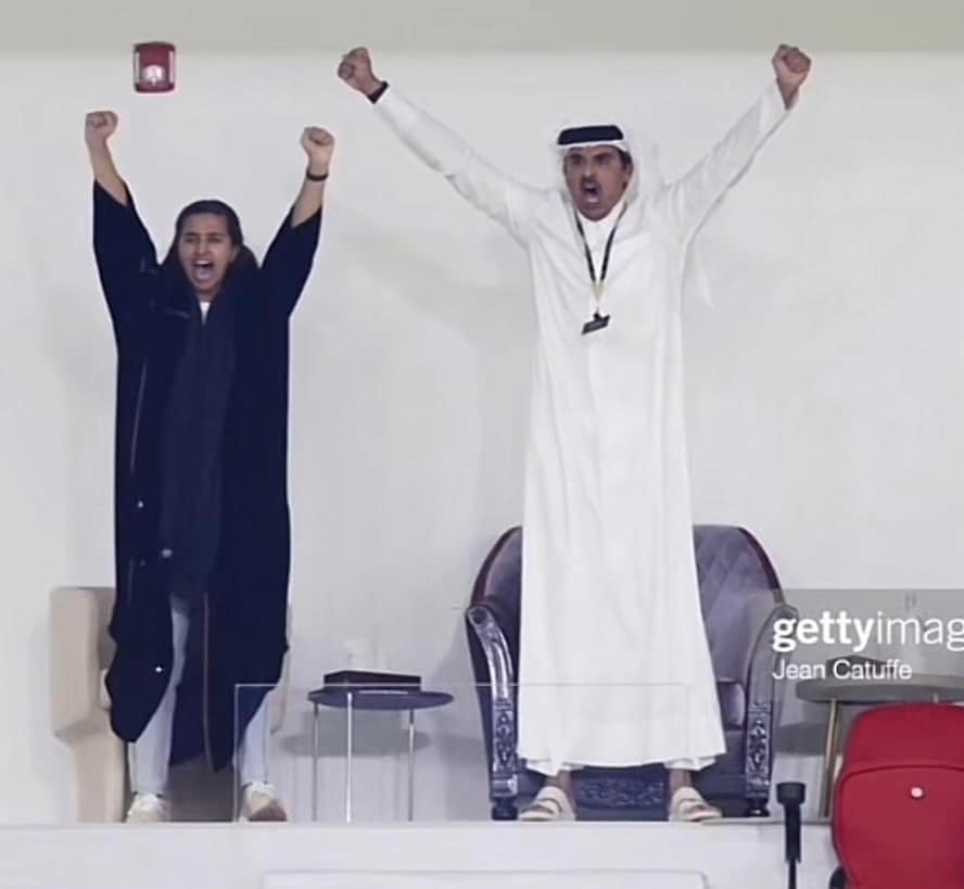 وظهر أمير قطر والعائلة الأميرية وهم يتفاعلون على أعصابهم مع هذه المباراة قبل أن يهتفوا فرحا بأهداف المنتخب المغربي.