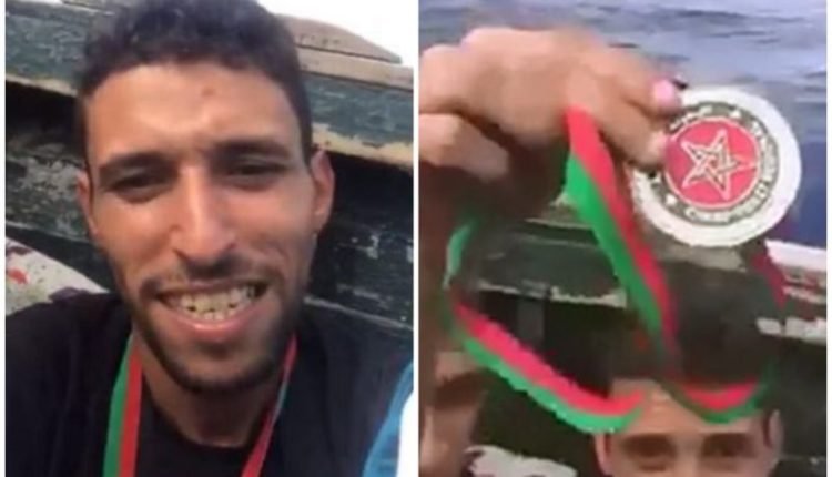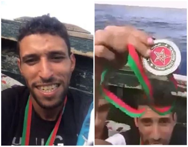 وظهر في الفيديو البطل المغربي وهو يلقي بميداليته في عرض البحر ملوحا بعلامة V بيده.