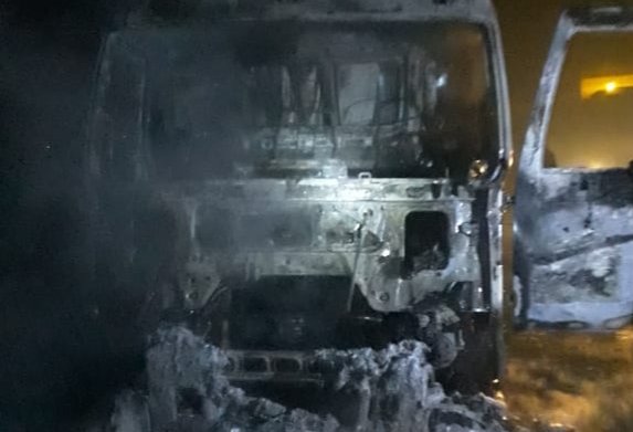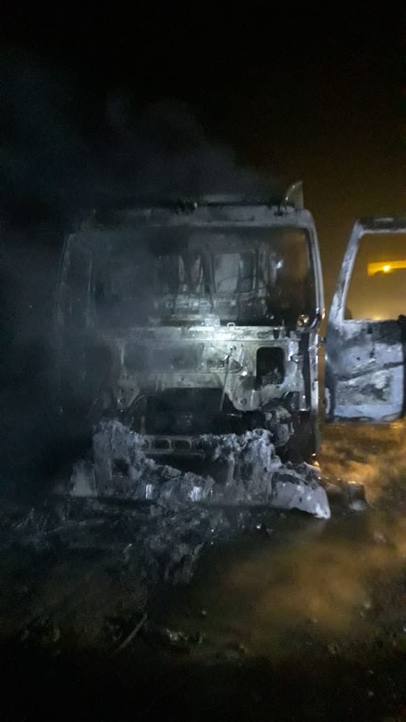 واحترقت الشاحنة بالكاملة بسبب الحمولة الزائدة، حسب بعض السائقين.