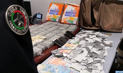 وقد مكنت الأبحاث والتحريات المنجزة من توقيف شخصين على متن سيارة خفيفة، بمنطقة سيدي علال التازي، وهما في حالة تلبس بمحاولة تهريب شحنة الأقراص المخدرة المحجوزة.