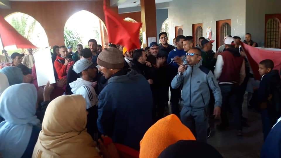 احتج العشرات من ساكنة حي الرجاء2بسوق السبت يومه الخميس ببهو بلدية سوق السبت اقليم الفقيه بن صالح ضد سياسة التهميش والاقصاء التي يعاني منها حيهم والتي زاد من حدة معاناتهم لامبالاة المجلس البلدي المنهمك في الاعداد لمهرجان العبث والتبهريج والبحث عن مصادر لتمويله وتمويل الجيوب المثقوبة .