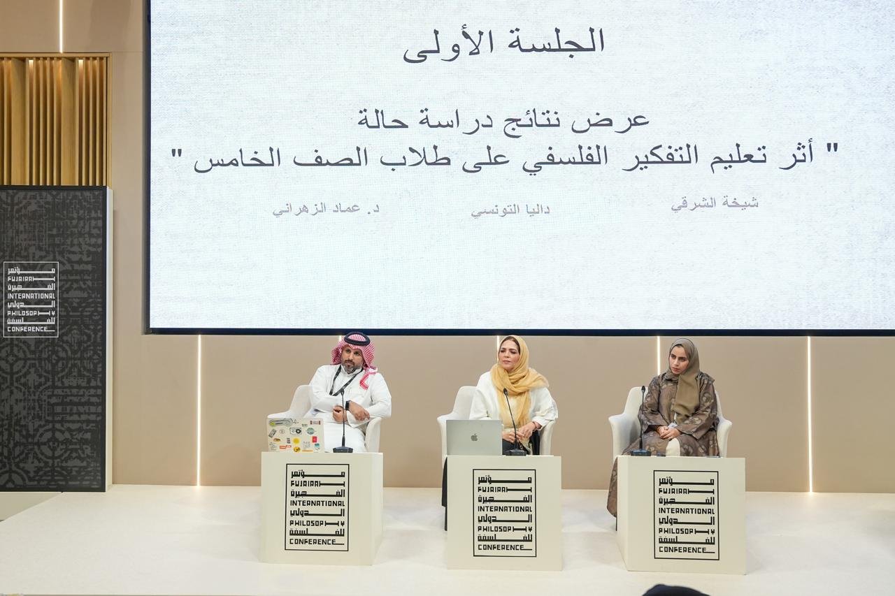 ثم عرضت نتائج دراسة حالة “أثر تعليم التفكير الفلسفي على طلاب الصف الخامس” خلال جلسة أدارتها شيخة الشرقي مسؤول مبادرات مركز الطفل ببيت الفلسفة، واستعرضت النتائج داليا التونسي المؤسس والمدير التنفيذي لمعهد بصيرة بالمملكة العربية السعودية والدكتور عماد الزهراني الحاصل على دكتوراة أصول التربية ودبلوما الفلسفة ومناهج البحث من جامعة الملك سعود.