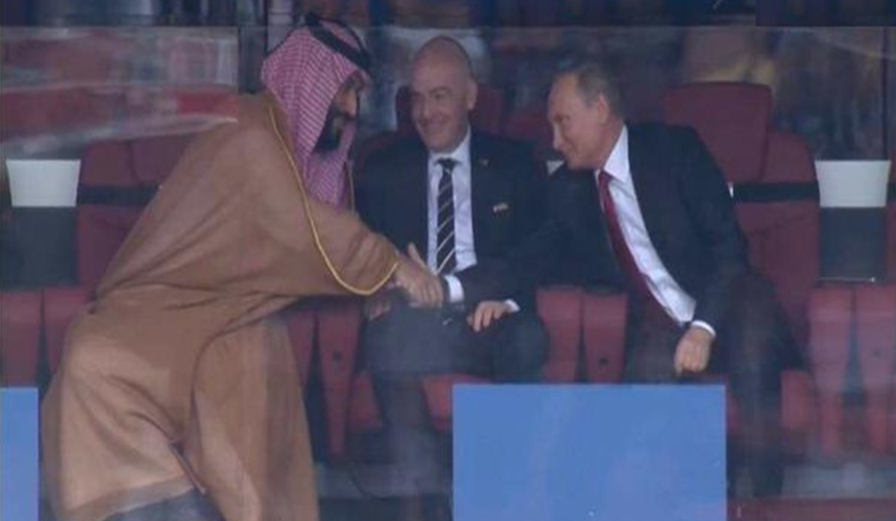 في مشهد غير مألوف في عالمي السياسة والرياضة، حيث كان مسرح هذه اللقطة بالمنصة الشرفية بملعب موسكو، الذي جمعت بين الرئيس الروسي فلاديمير بوتين وولي العهد السعودي محمد بن سلمان ورئيس الفيفا جياني أنفانتينو الذي كان يتوسطهم.